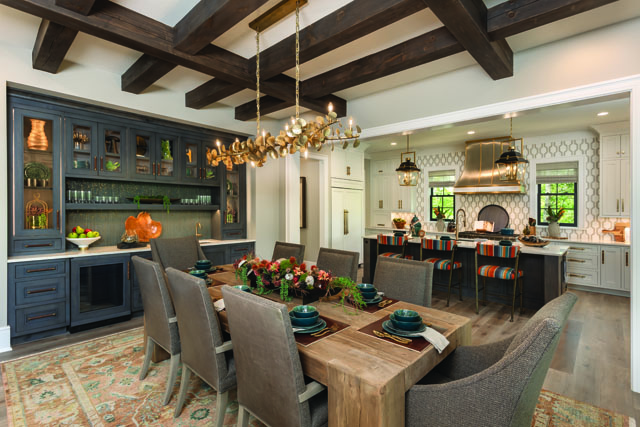 For their home in High Hampton, the Ryans found just that. Once they opted to purchase a lot and build a home, their realtor introduced them to Dillard-Jones. They toured a house in process at Lonesome Valley. Impressed, the Ryans started doing their homework and shared several Zoom meetings to discuss what building a Dillard-Jones house meant. After a dinner with the entire team in Greenville, they knew they had found their home-building partners. Building principal Tom Dillard, principal architect Stefan Young with DOMA, and interior designer Baylie Weeks with Tribus Interior Design shared a relaxed meal with the Ryans that Candice believes set a more personal tone as the project progressed.