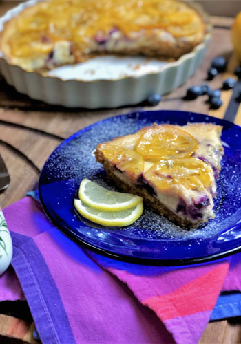 Roasted Blueberry Cheesecake with Candied Lemons
