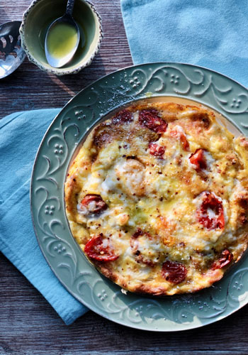 Burst Tomato Frittata with Basil Oil