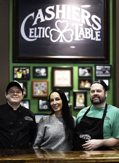 Like St. Patrick, Cashiers Celtic Table uses the symbolism of the shamrock in their logo. And while the clover is undoubtedly a wink at the Irish fare to be found inside, Babac and D’Arcy’s desire for the spirit of gathering recalls another Gaelic symbol, the Celtic Knot. This ancient interlacing symbol found in art and chiseled in stone is believed to have deep meanings of interconnectedness. With a staff and growing client base who share the joy in coming together over a warm meal or cold beverage, connectedness takes on added significance. “Word is getting out, and each week is getting better than the last. We have people who will come daily and just get one beer,” Jacque beams. Like Southern Appalachia itself, Babac and Adams’ Irish heritage is lending to the plateau’s unique culture and reminding us that community is what makes us truly lucky.