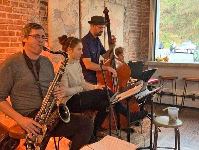 While Kittle is highly regarded in the local live music scene, he’s well known within the broader industry having played with American R&B/soul artist Erykah Badu, as well as jazz musicians Russ Spiegel, Freddie Bryant and Michael Lowenstern. But even though he has worked with such music heavyweights, his “favorite moments are just playing local gigs with my friends for hip and appreciative audiences.” Local audiences can catch Kittle playing with the jazz collective We Three Swing every other Tuesday at Frog Level Brewing and Bevel Bar on the first Saturday of every month; both establishments are located in Waynesville, NC. Along with Kittle, We Three Swing features Michael Collings on bass and guitar, Duncan LeMay on piano and Cara Rimmer performing vocals. Kittle added, “We also have frequent collaborators like Elias Grimsley on drums, Steven Alvarez on guitar and Glen Basham on the violin. We bring in the best players from the area to fill in and sub when needed, thus the ‘collective’ part. Michael and I have been playing together for 15 years or more and other members have trickled in.” Kittle plays at the Hummingbird Lounge on most Saturdays and is frequently joined by his partner, the very talented singer, Cara Rimmer.