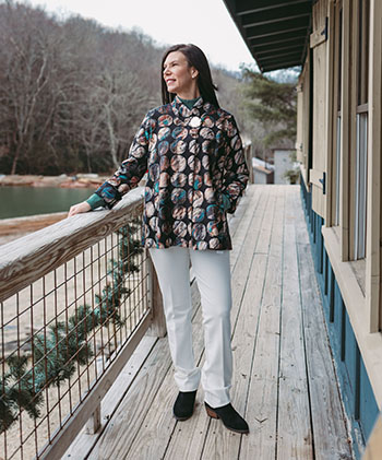 Joseph Ribkoff jacket, $359; Metric mock turtleneck, $85; Insight pull-on pant, $115; all at Spoiled Rotten.