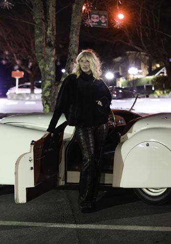 Lysse New York Night Out pants in Scuba Cotton Plaid, $139; Lysse New York velvet turtleneck, $135; Rino & Pelle faux fur cape, $165; all at Spoiled Rotten, Highlands