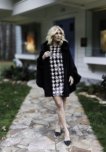 Tyler Boe Sequin Dress, $252; Tyler Boe fur trimmed cape, $457; all at Wit's End, Highlands