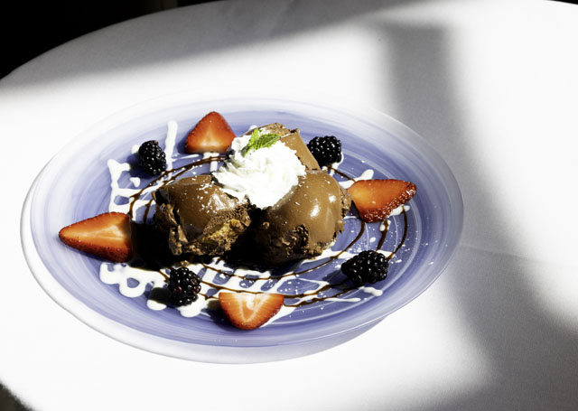 Table-side presentations are rare indeed, but Nuzzi addresses a whole Dover sole on a platter with practiced ease and flair, transfers the filets to a plate, then drizzles a just-right amount of meunière sauce – butter, lemon, capers and white wine – over the flaky white meat.