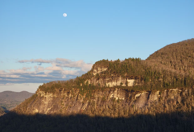 There are few places east of the Rockies where the drama of the night sky is as arresting as in the Southern Appalachians. A proud moon rises over this big landscape with prominence, outshining (outglowing, really) any other object in the night sky. Here in the mountains, there is less ambient light from cities to compete with the cosmos, and higher elevation means thinner air through which to view them. On the Highlands-Cashiers Plateau, the striking beauty of the natural landscape is always on display: big vistas, rugged boulders, ample streams, waterfalls and verdant woods. When the lush vegetation of the greener months is dormant, these big vistas become more evident, and in winter, opposite a low sun, the full moon sits high in a panoramic sky. On such cold long nights, barren contours of the brumal landscape glow in the soft cast of earth’s moon. Its shimmering reflection engages an inner reflection that has ignited the human imagination throughout history.