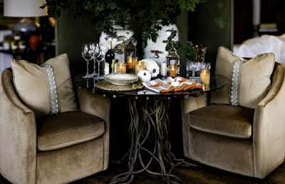 Lisa Wester of Lisa Wester Interiors suggests changing linens on a tabletop as a simple and inexpensive way to bring new colors to your table. “Candles always add a special spark to a dinner party,” says Lisa. “Don’t be afraid to enjoy a Saturday at your favorite thrift store. Go in with an open mind, and you’ll be sure to find something special. Whether it be a new centerpiece container, a special decorative object or two or even a set of fun chargers, mixing and matching textures, colors and interesting objects yields a curated and collected look and some of the most inviting tablescapes I’ve ever seen.” She recommends changing tablescapes to incorporate brassy tones and warm colors for fall. She says, “They look beautiful alongside wood-burning fireplaces.”